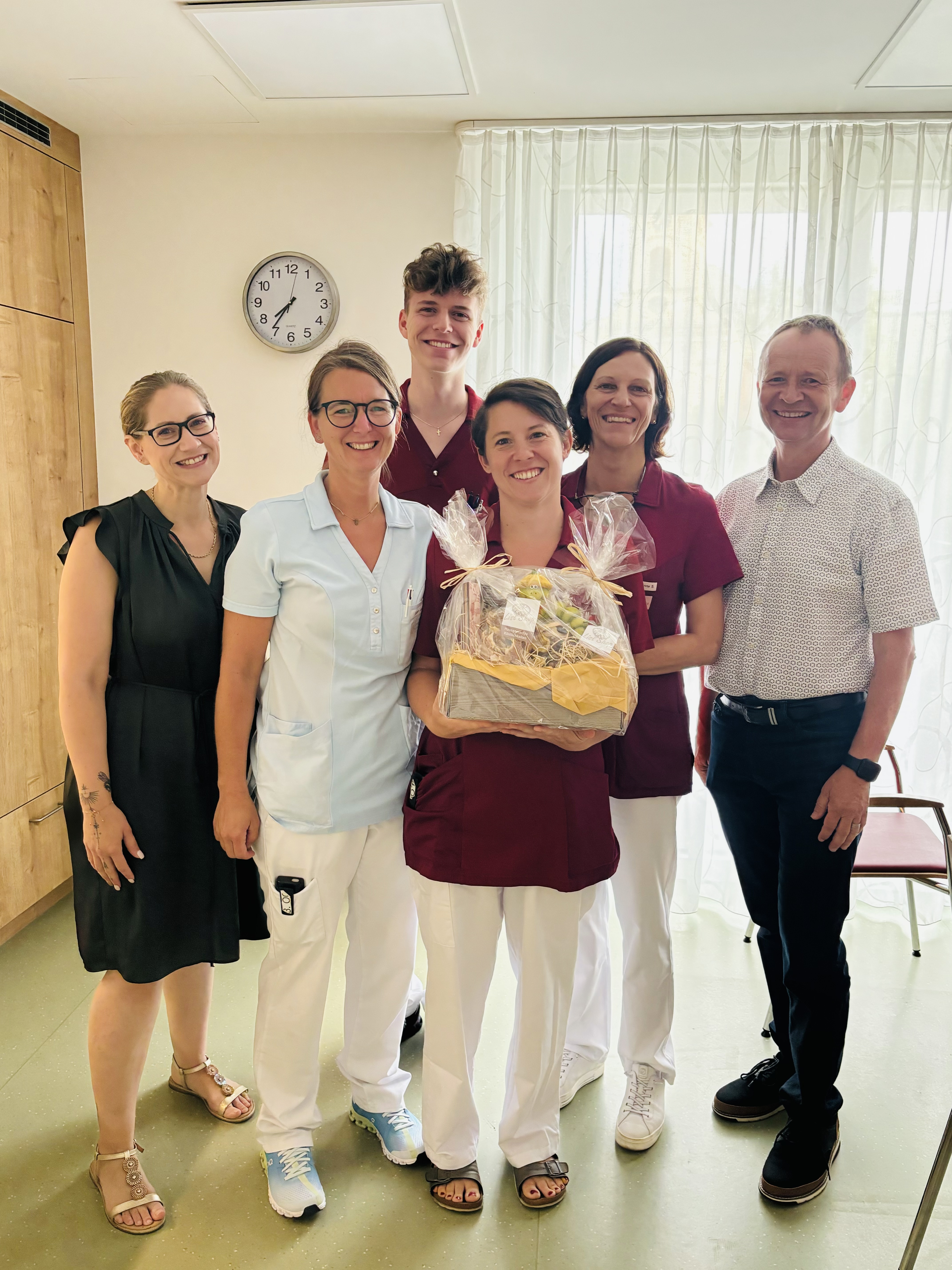 Anlässlich dessen wurden unsere Mitarbeiter*innen mit einem Körbchen mit vielen leckeren Sachen überrascht.
